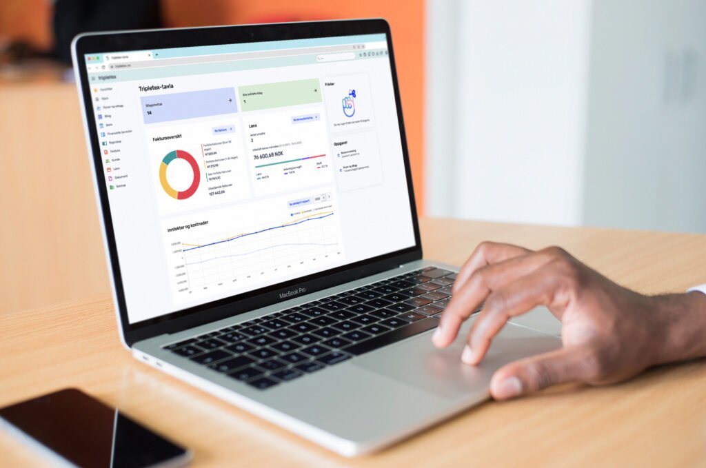 Tripletex er et brukervennlig og fleksibelt økonomisystem som legger til rette for et effektivt samarbeid mellom deg som kunde og oss som regnskapsfører. Med tilgang til alltid oppdatert regnskap sikrer vi at økonomistyringen foregår sømløst og effektivt. Det gir deg full kontroll over økonomien – uansett hvor mye eller lite du ønsker å gjøre selv.